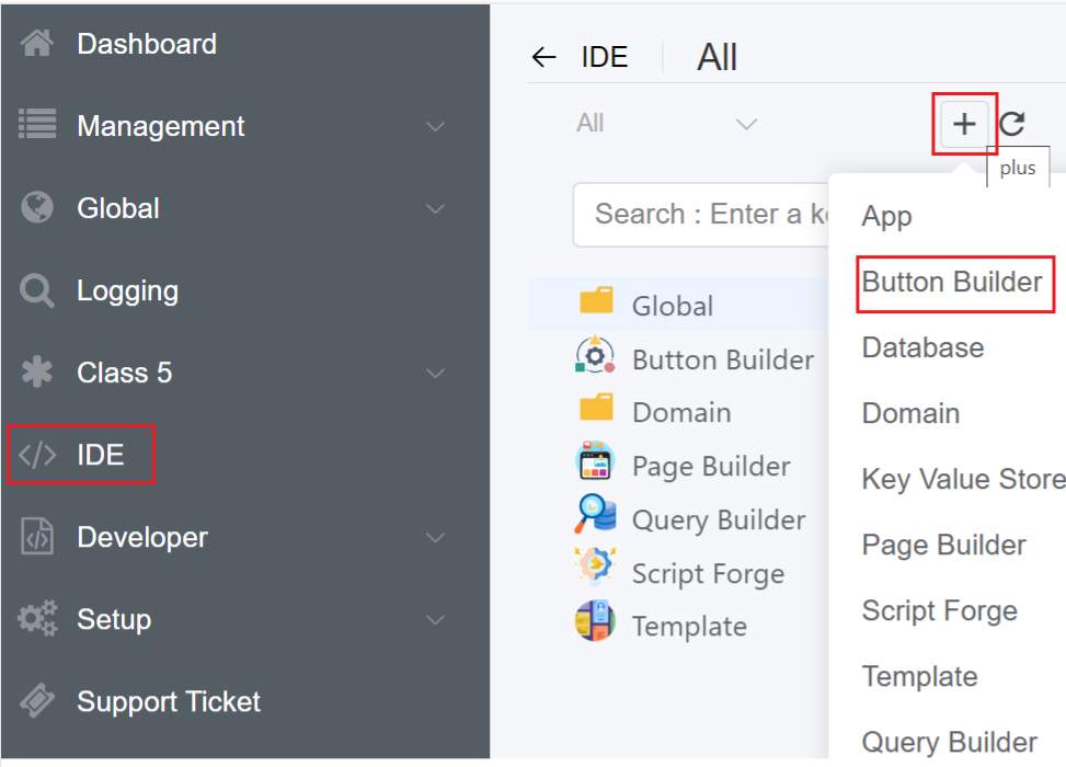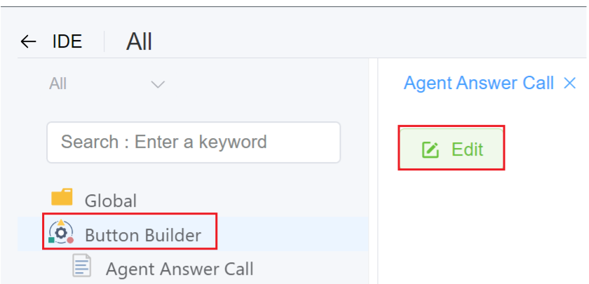 3.The created Button will be visible on the IDE panel under Button Builder. Click on the created button, also you have the option to Edit the button.