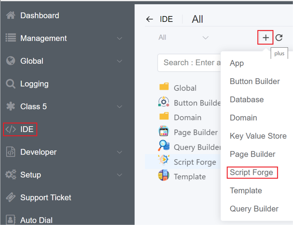 To add a script, login to your Control Panel. Click on IDE +, and select