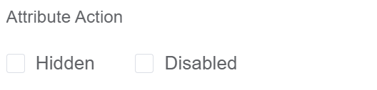| Attribute Action | Enable Hidden action to hide the field Enable Disabled action to make the field unusable |
