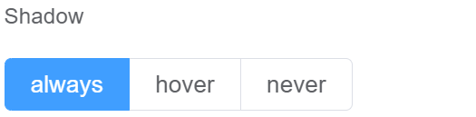 | Shadow | [Optional]It's used to create a more visually appealing and engaging page. Shadows can also be used to make it easier for users to find and interact with page elements. the terms "always," "hover," and "never" refer to the visibility of the component's shadow | ![]() |