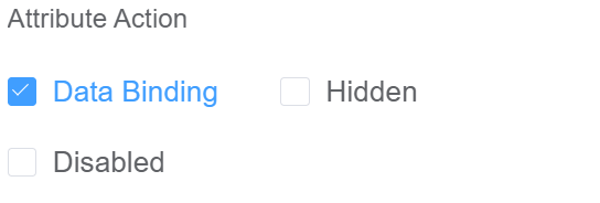 | Attribute Action | Enable Data Binding to connect the data to UI Enable Hidden action to hide the fieldEnable Disabled action to make the field un-suable |