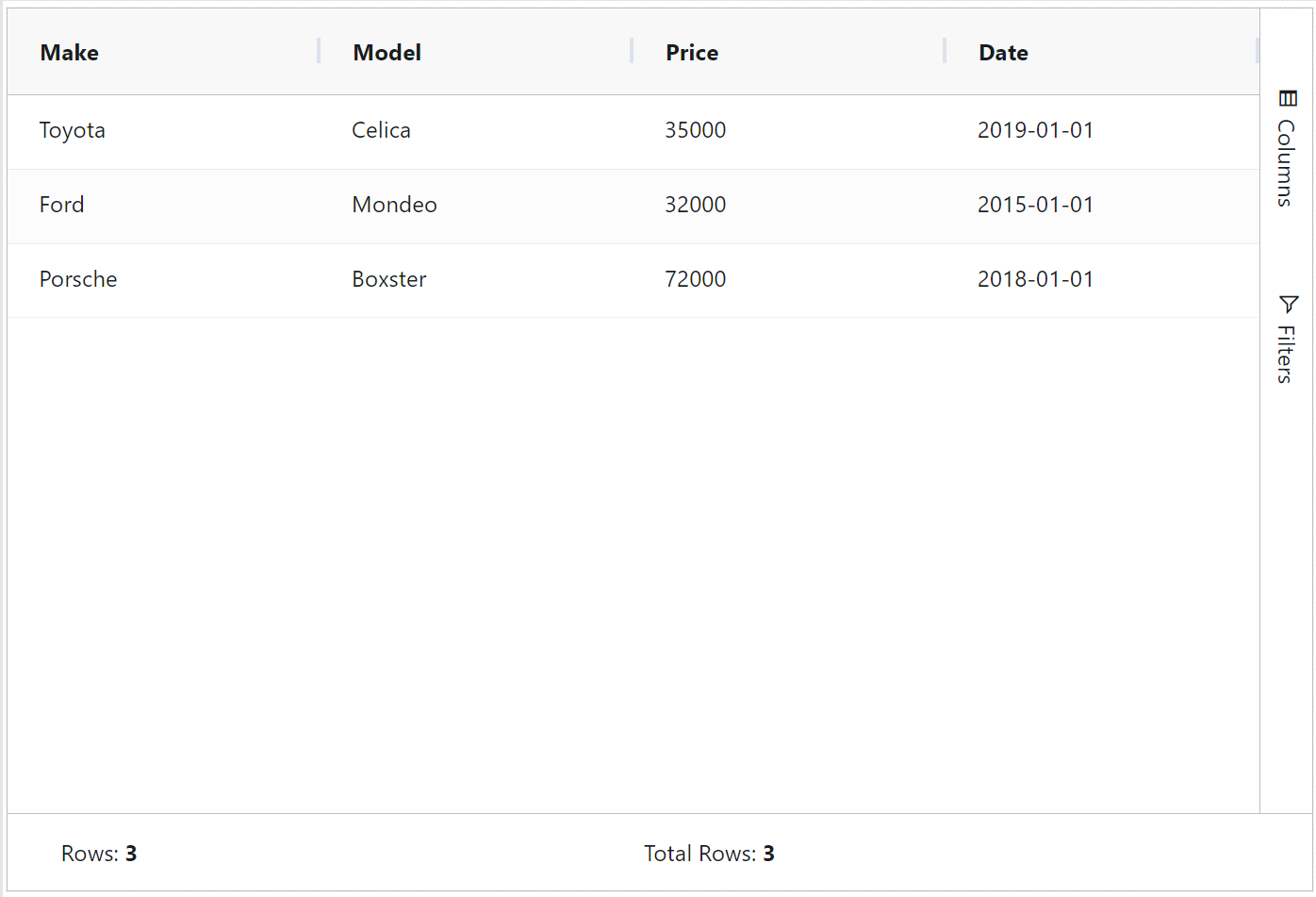 | Side Bar | Displays the side bar with Columns and Filters | ![]() |