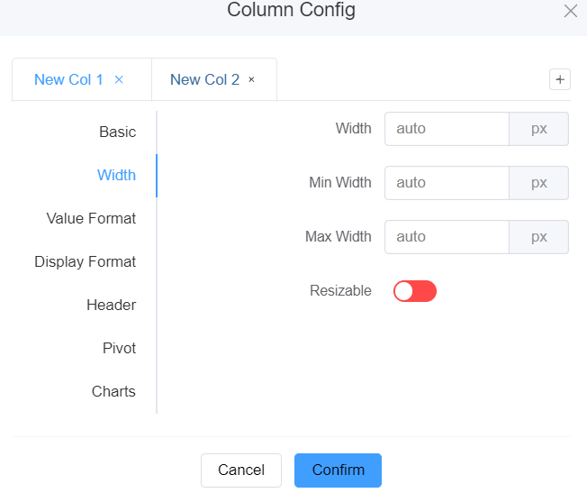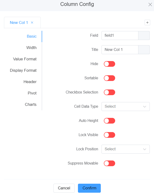We're talking about Column Config separately as it's a comprehensive component. Click on + to add a new column.