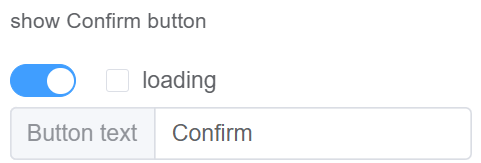 | Show Confirm Button | Enable this option for displaying the confirm button (the button name is editable) Enable Loading option to show the user that the dialog is busy. It prevents the user from interacting with the dialog until the operation is complete |