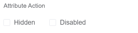 | Attribute Action | Enable Hidden action to hide the field Enable Disabled action to make the field unusable |