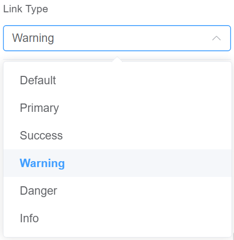 | Link Type | You can select from various types of link you can represent including Default, Primary, Success, Warning, Danger, Info | ![]() |