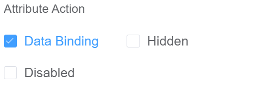 | Attribute Action | Enable Data Binding to connect the data to UI. Enable Hidden action to hide the field. Enable Disabled action to make the field unusable. |