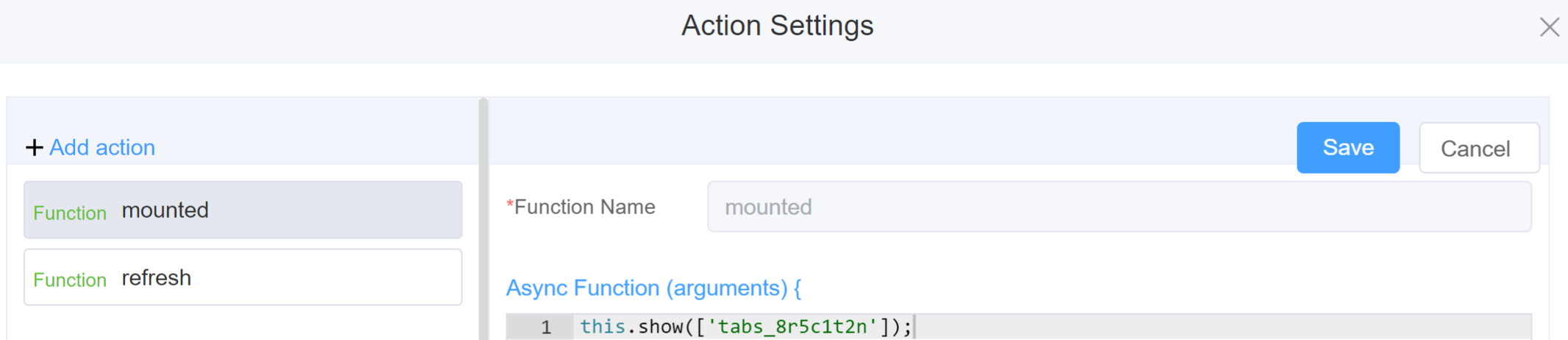 - Go to Form Attribute Action Panel Setting (Mounted | refresh | click 'Add action').