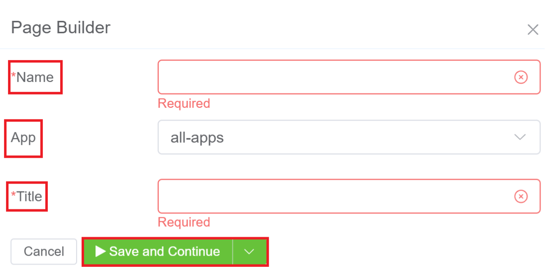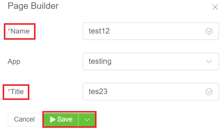 4.Enter the Name and Title of the Page Builder. Select the App for the Page Builder. Click Save.