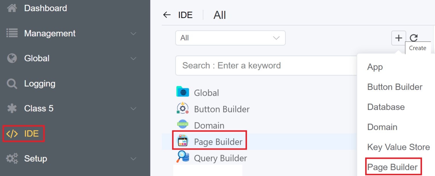 4.The created Page will be visible on the IDE panel under Page Builder. Click on the created blank page to create your customize form/page.