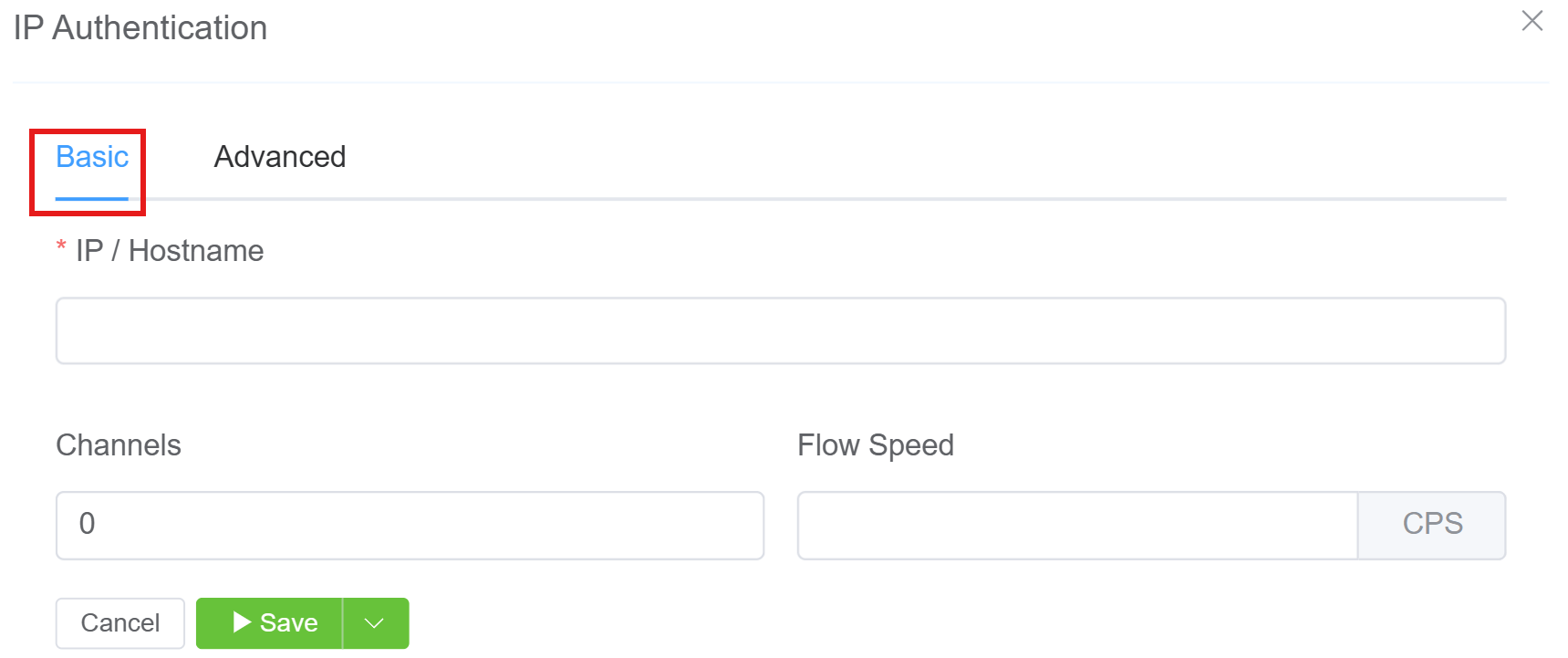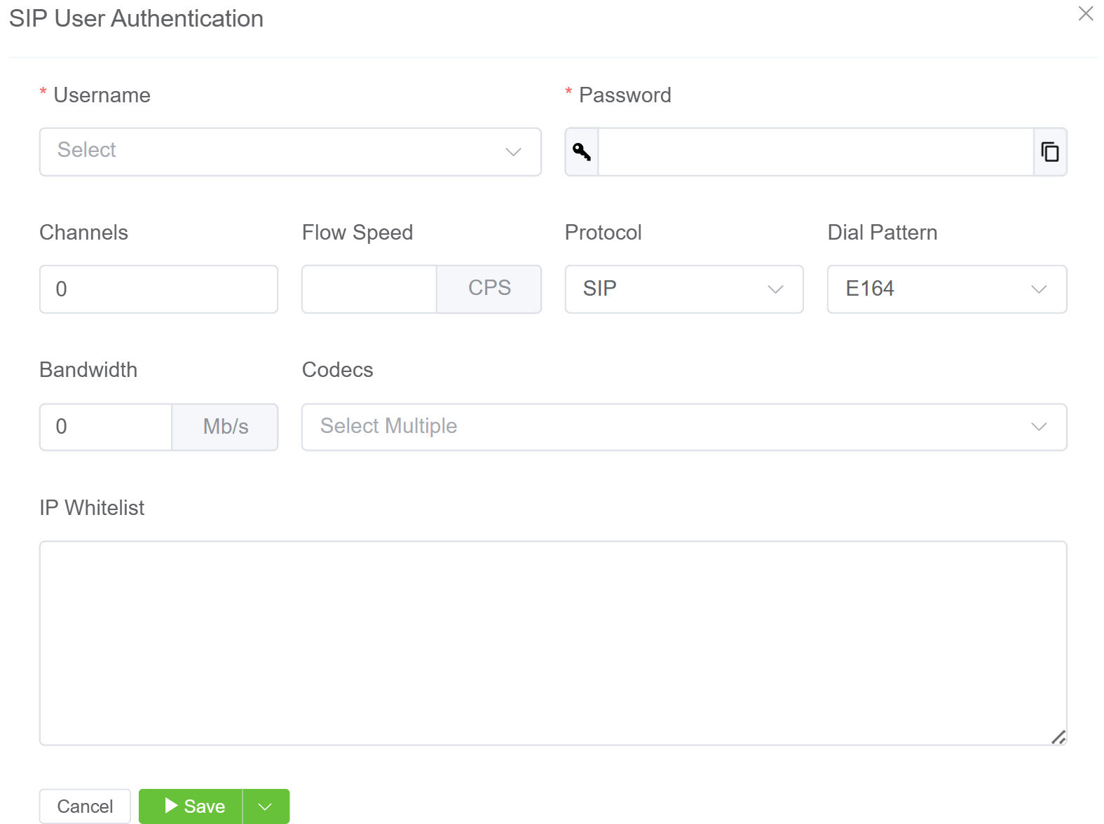Use the Auth tab to configure IP or SIP (Username / Password) Authentication.