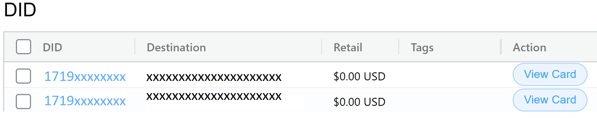 Each DID displayed in the Customer Portal includes a price that is defined by the carrier’s pricing package.