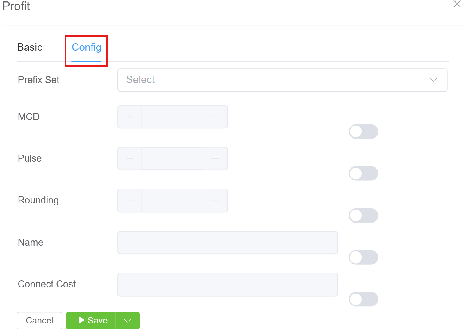 - Prefix Set: Select Prefix Sets (check here to simplify the Profit configuration).