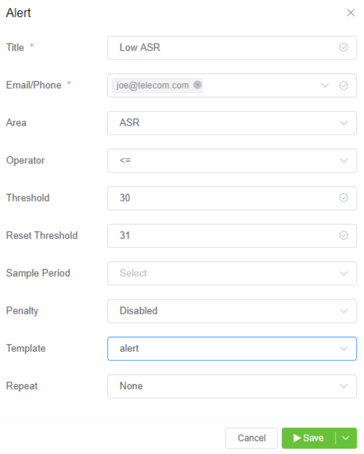 This will email the customer with a custom template, whenever their ASR (Answer Seizure Ratio) reaches 30% or below.