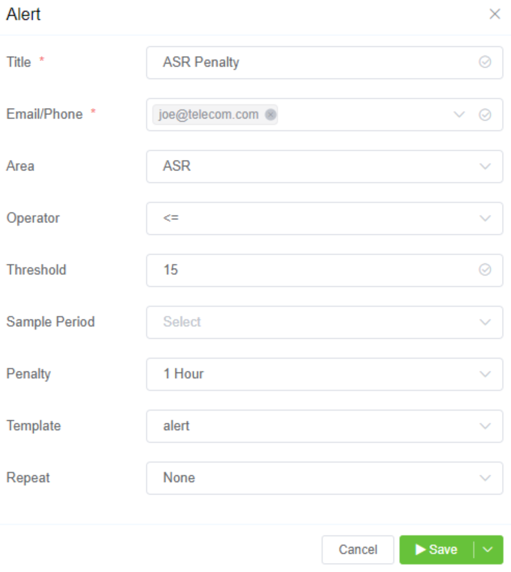 ASR Penalty Similarly, you could set the ASR Threshold to 15, and enable a penalty of 1 hour. This would disable the customer for 1 hour whenever their completed calls drop below 15% of total calls.