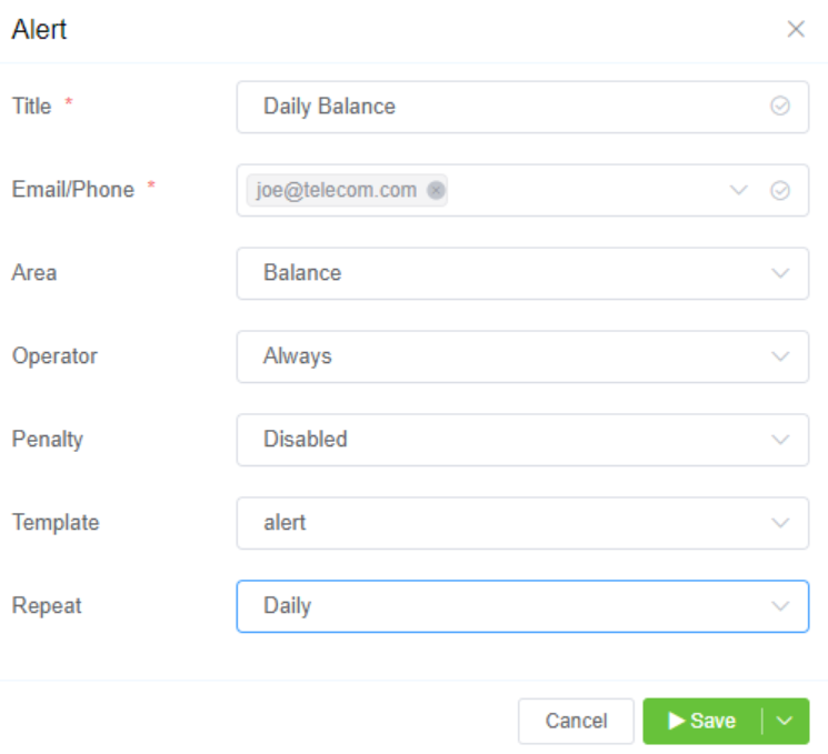 - Email/Phone: Specify where to send the alert when triggered.