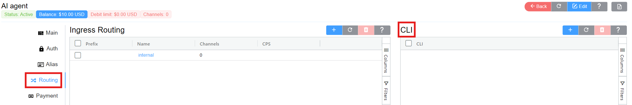 - Navigate to Management Customer Customer [Name] Routing CLI blue