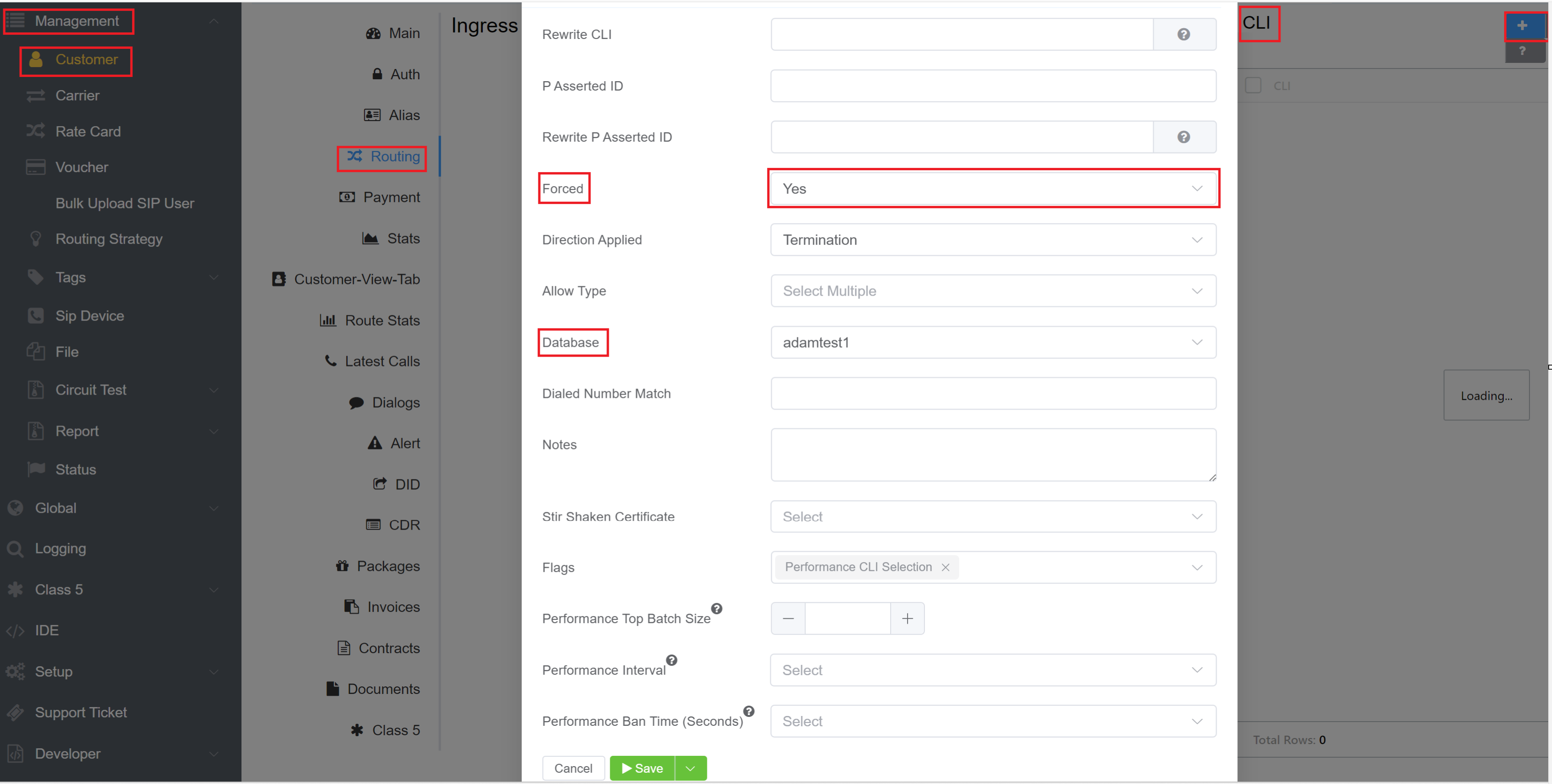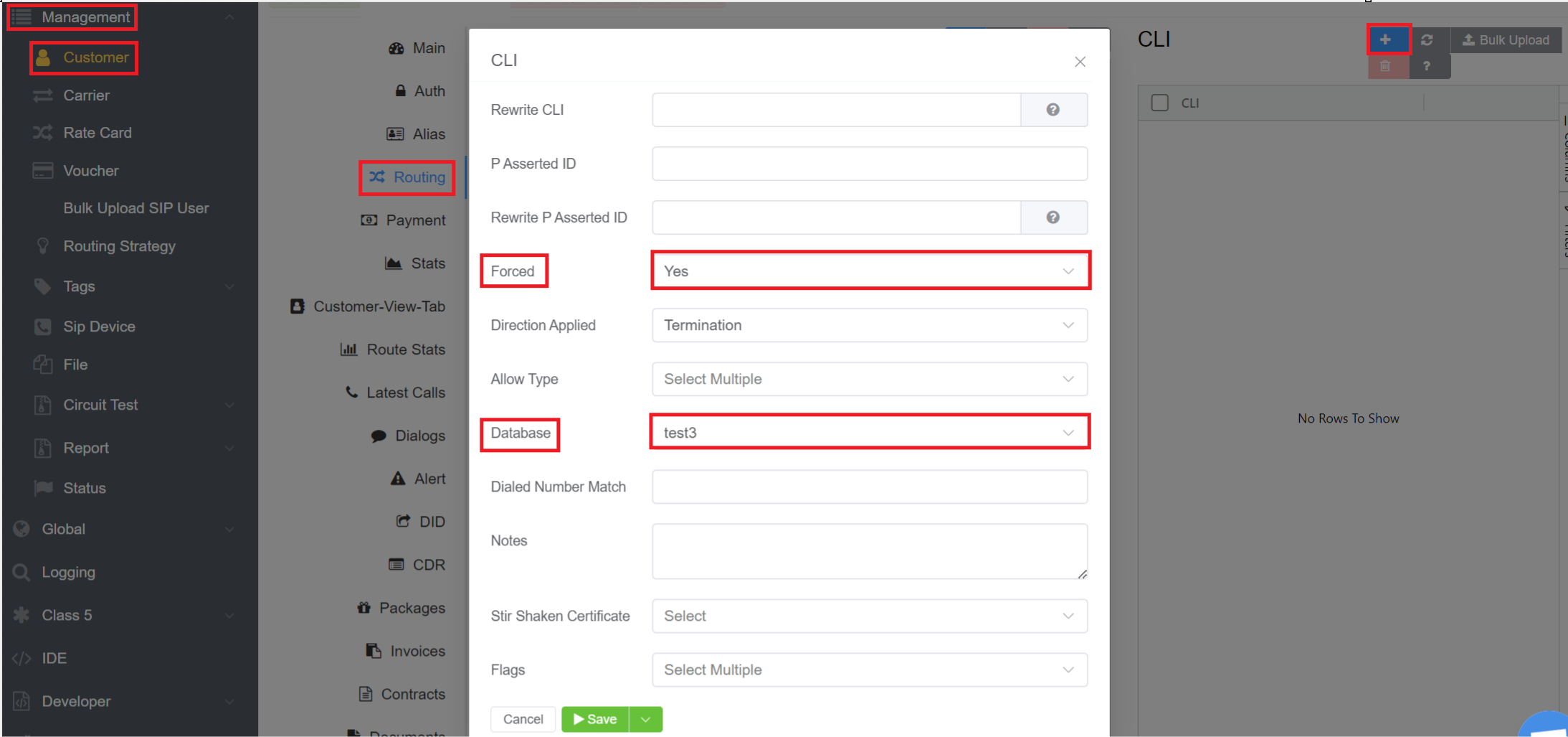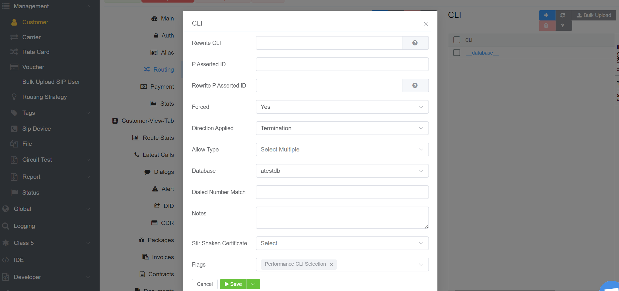 - Go to Customer > Routing > CLI add the same database under database field. Under rewrite PAID field add this database.