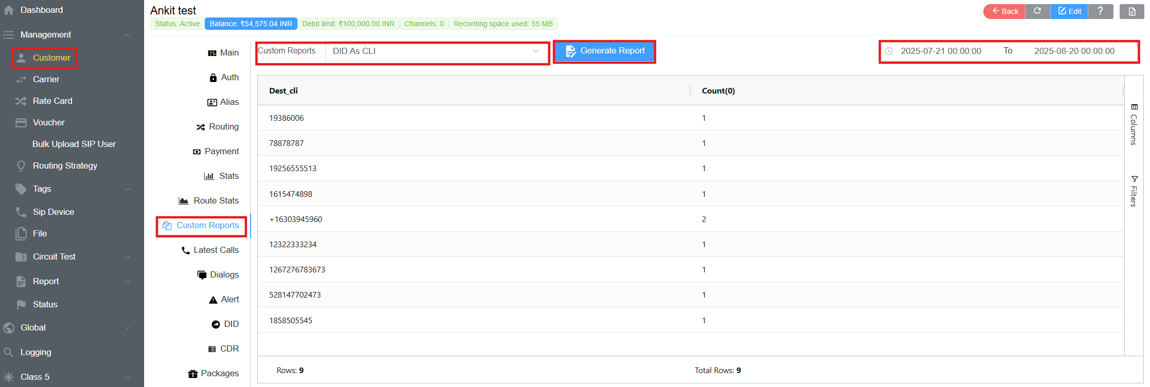 | DID as CLI Report | Shows calls where DIDs are used as Caller Line Identification (CLI). | Useful for compliance and ensuring proper CLI presentation per regulations or business rules. |