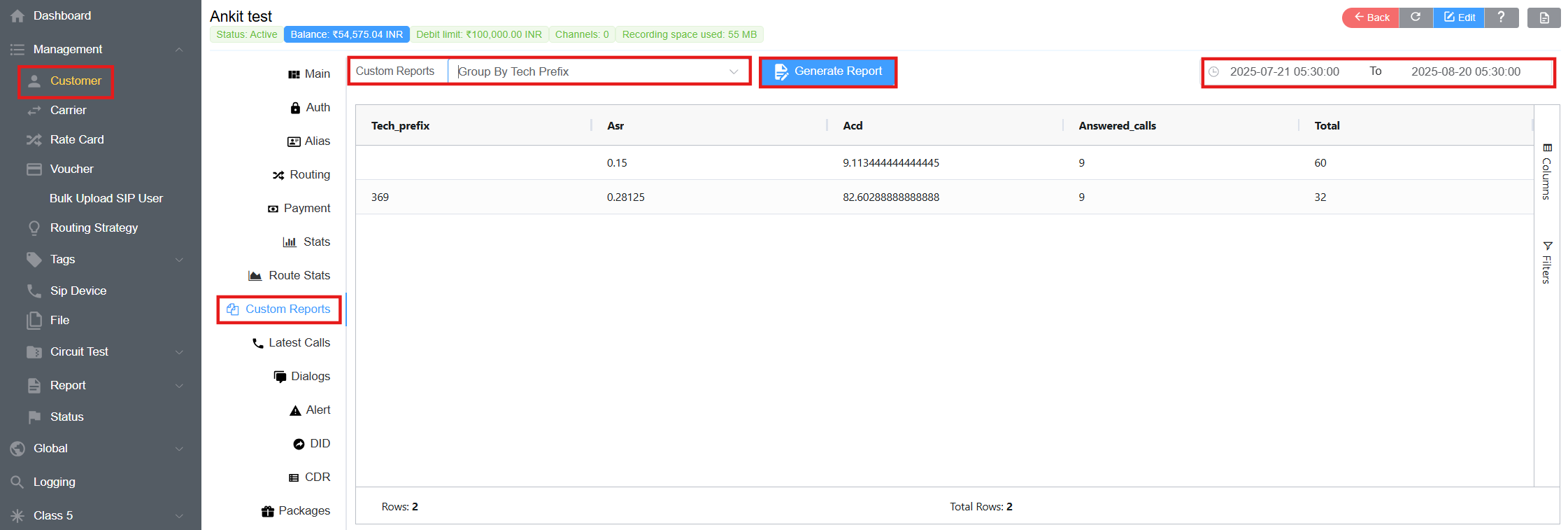 | Group by Tech Prefix | Breaks down call statistics by routing technical prefixes. | Optimizes routing by analyzing quality/performance across prefixes. Helps detect failing routes. |