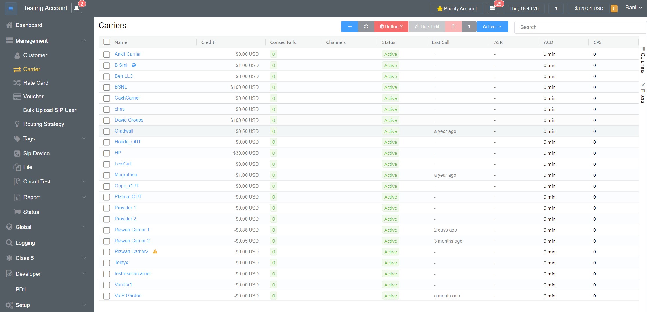 - Circuit Test: Enables users to verify the integrity and performance of call routing. By pointing a Direct Inward Dialing (DID) number back to the Circuit Test system, users can evaluate critical metrics such as MOS, DTMF, and Caller ID consistency. This process ensures that the purchased routes meet expected standards.