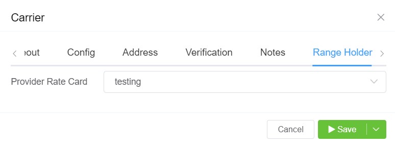 - Then you go to the Carrier click on Edit and then click on Range Holder and select Provider Rate Card and click on