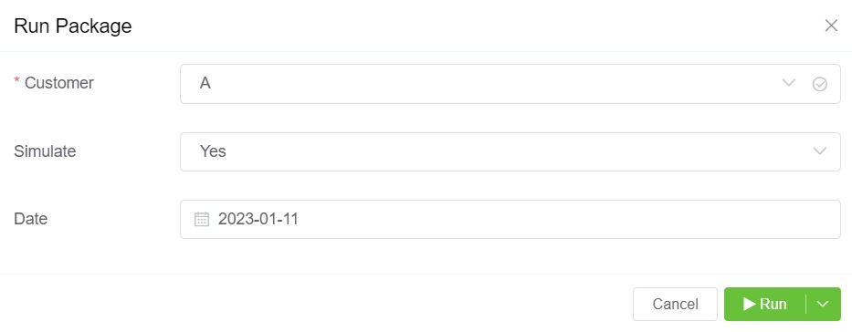 yes(it will generate a report) if you want to the run the package orno(it will again charge for the package). - Date: You can select the date on which you want to simulate the package.