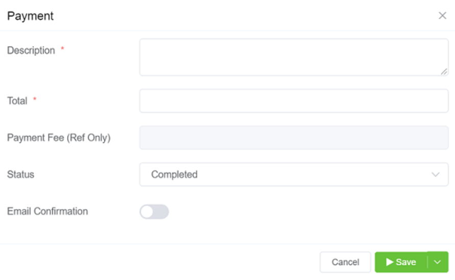 - Payment Fee (Ref Only) For payments made through PayPal or another external payment system, the Payment Fee field is automatically filled.