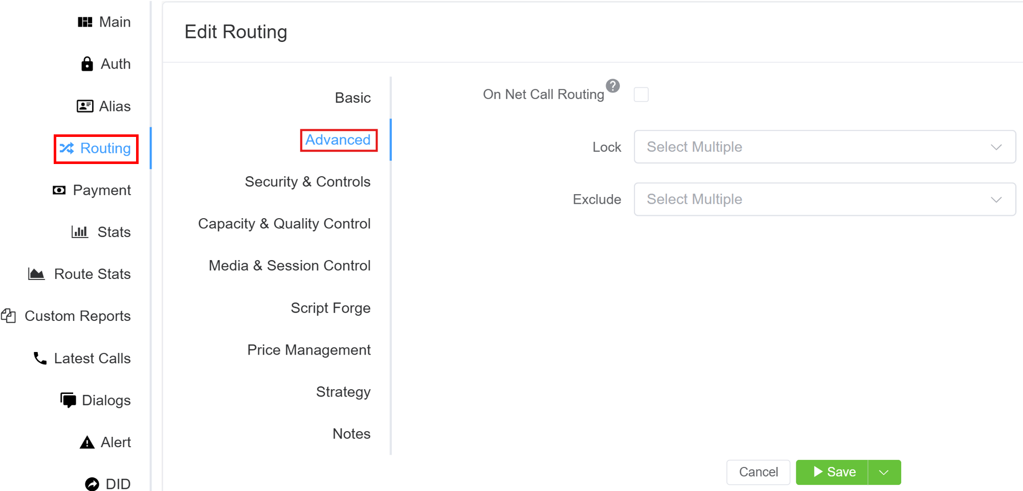 - Carrier-Level Routing Controls: Includes include (whitelist) and exclude (blacklist) carrier options.