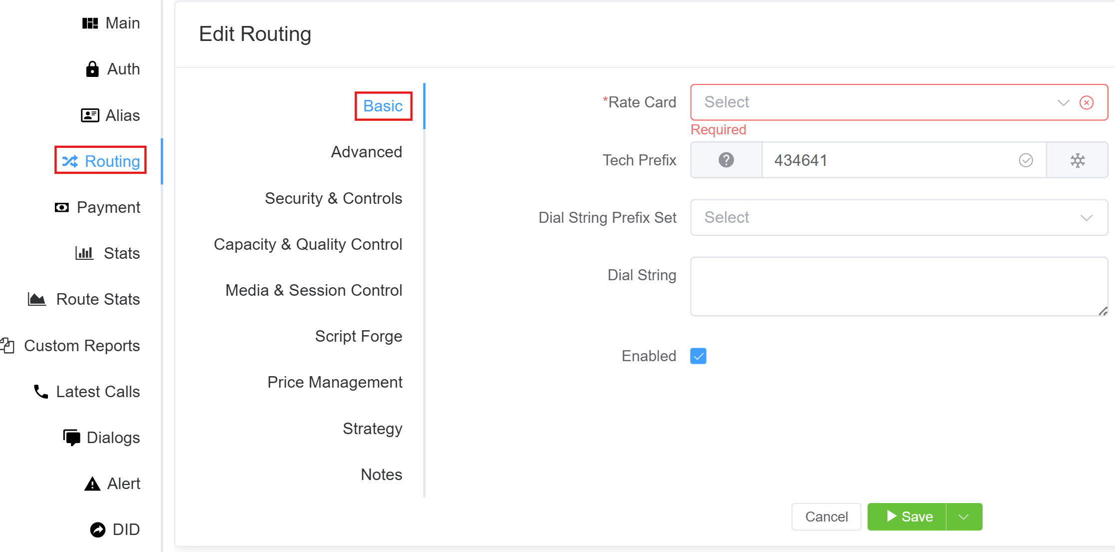 Strategic Routing feature allows creating a Routing Strategy that, when applied, will route calls to specific provider rate cards, completely bypassing any routing configured in the customer rate card.