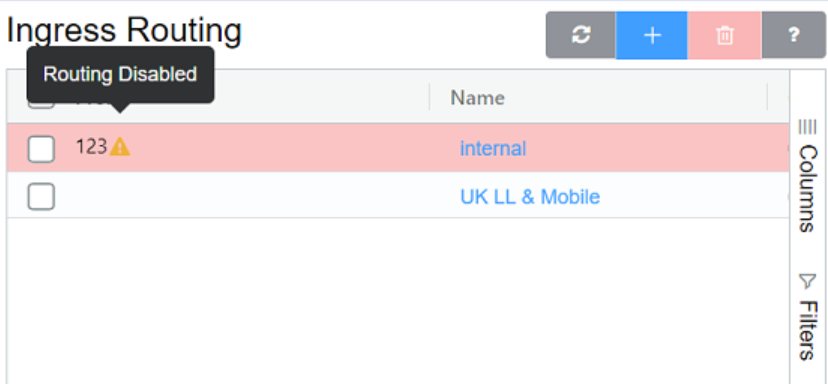 Routes highlighted in red on the customer Routing page gets disabled. Open the route, click Enabled, and then Save to enable them