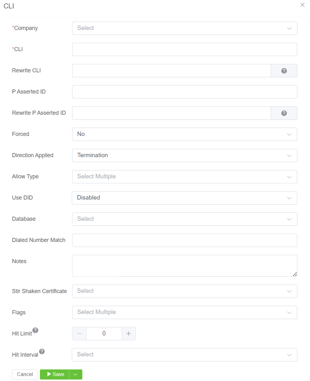 Forced: Enabling this will allow a call if there are no other matching CLIs in the system. This will also replace the CLI that's presented with the CLI entered here.