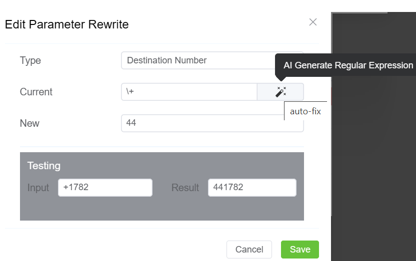 Go to Customer Auth, select IP Auth or SIP User Auth, and then navigate to Parameter Rewrite: