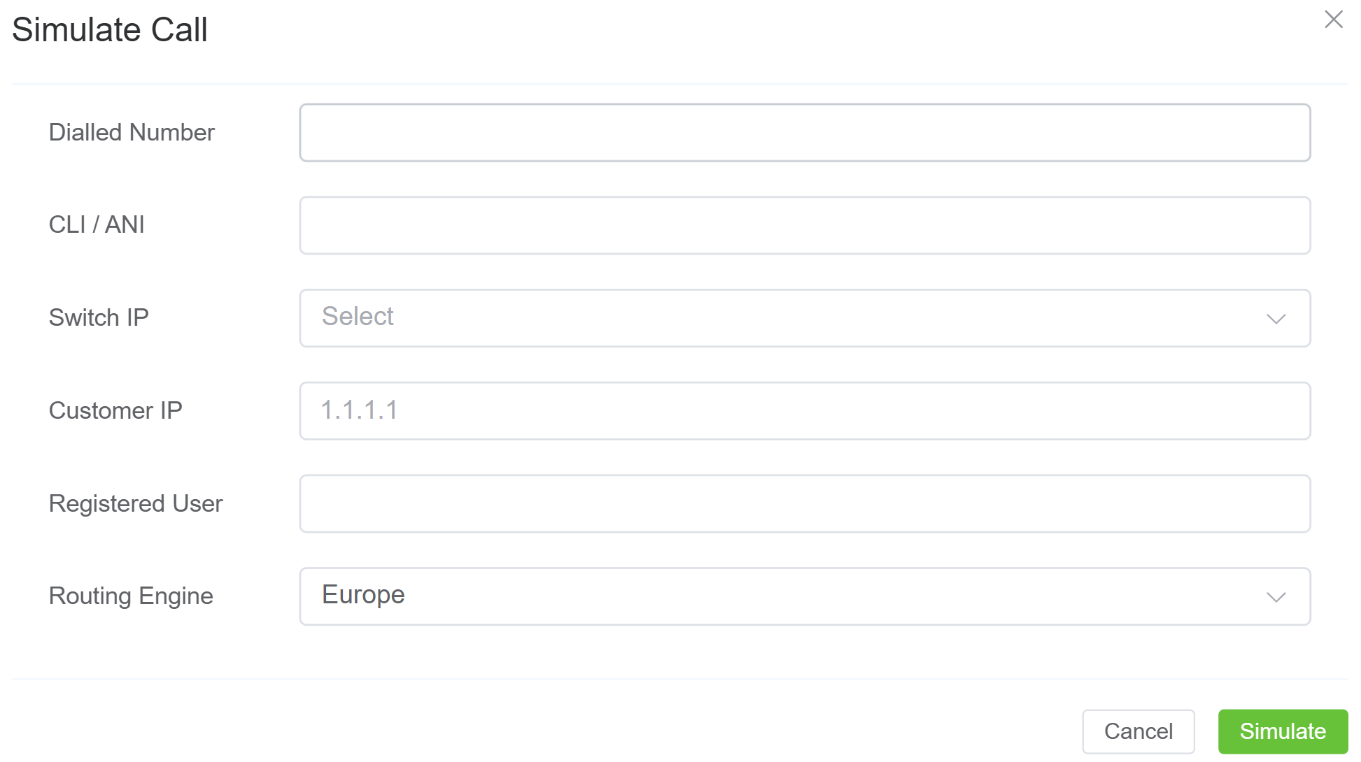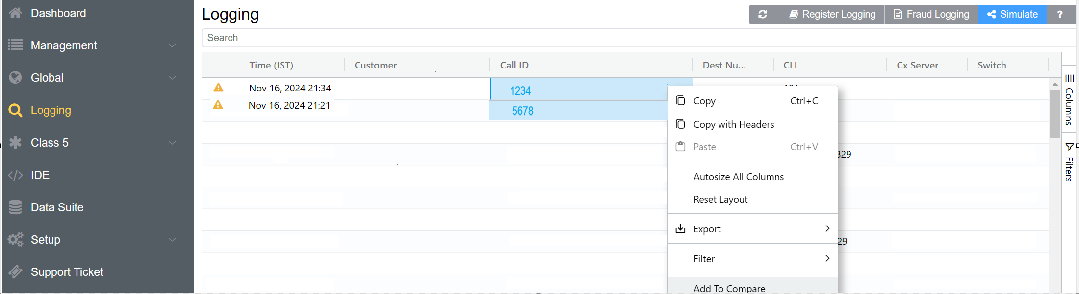 Click Simulate either from the Logging screen or from within a specific Call ID: