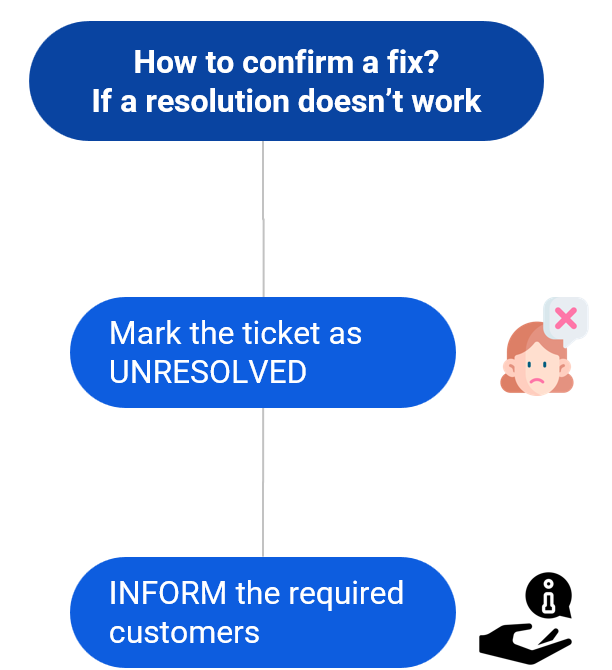 If the resolution doesn't work, make sure the problem gets marked as unresolved and the required parties are informed about the status.