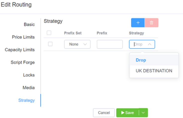 - In the Routing Strategy screen, click .