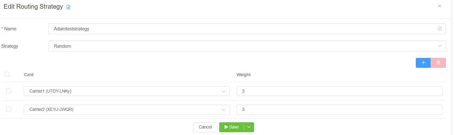 | Tier | Tiers in routing strategy allows distribution of calls. You can add as many cards for a customer. The calls get distributed corresponding to the weights assigned to them. It will try one carrier from each rate card. |