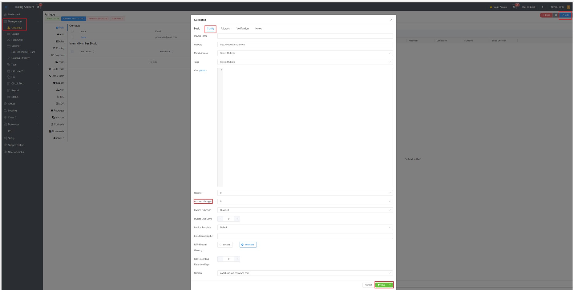 You will see a window with various fields; click on the drop-down menu of the Account Manager to select one for your customer.