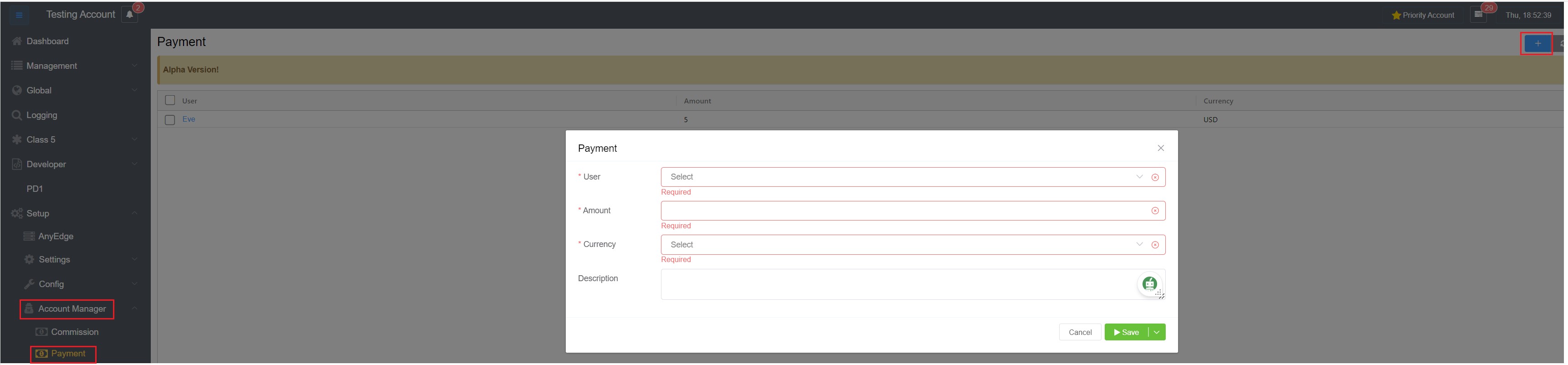 The Payment feature lets you record the information of the payment you've made to your Account Manager.