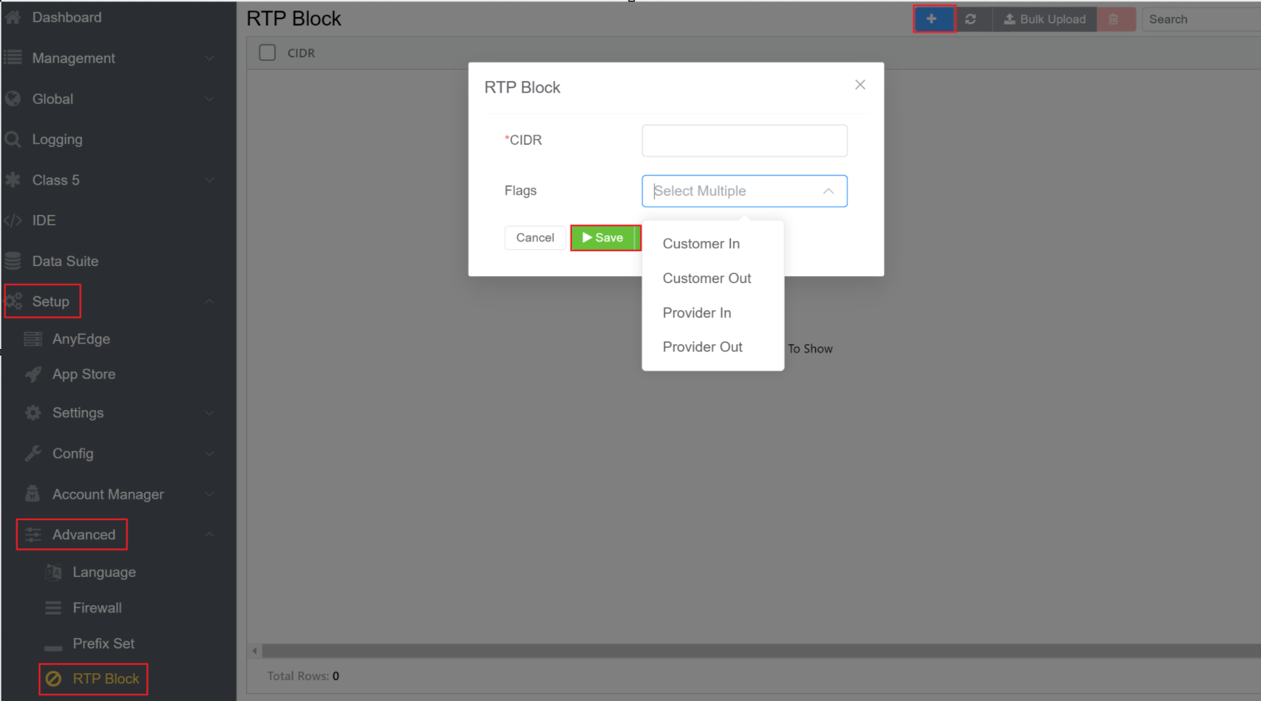 - Customer In: This flags checks the RTP when the call comes from the customer.