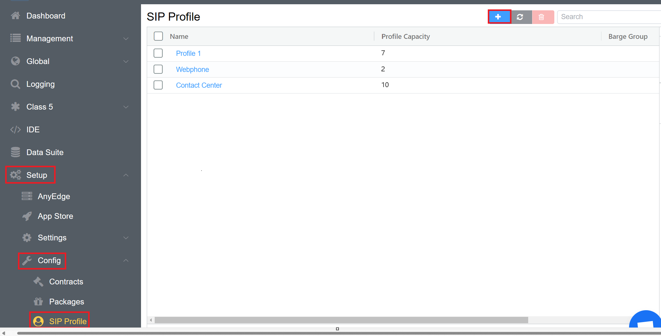 Go to Setup Config SIP Profile and you will see a screen as shown below. Then click the blue