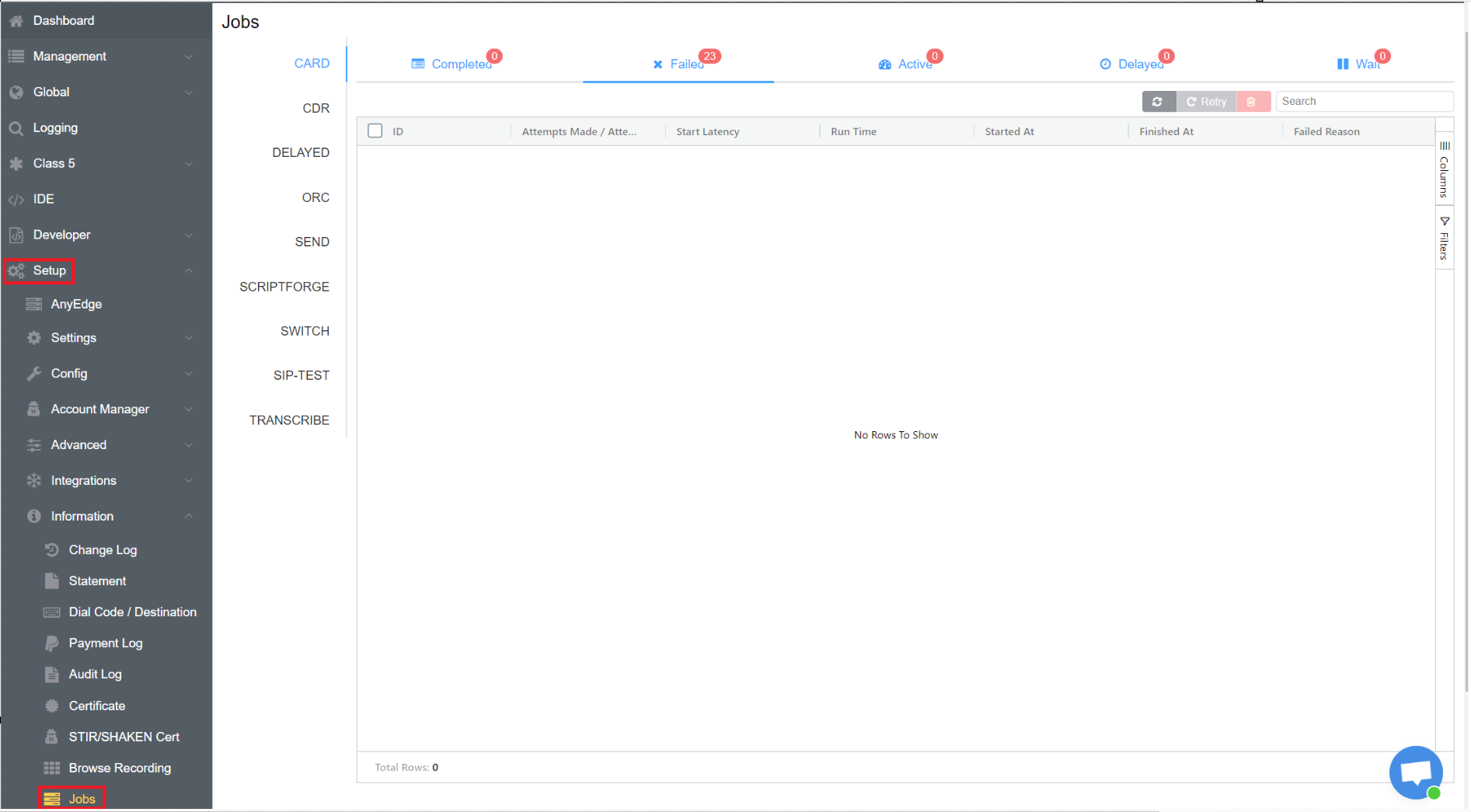 You can see the information like ID, Attempts made/Attempts, Start Latency, Run Time, Started At, Finished At and Failed Reason for all the statuses discussed above.