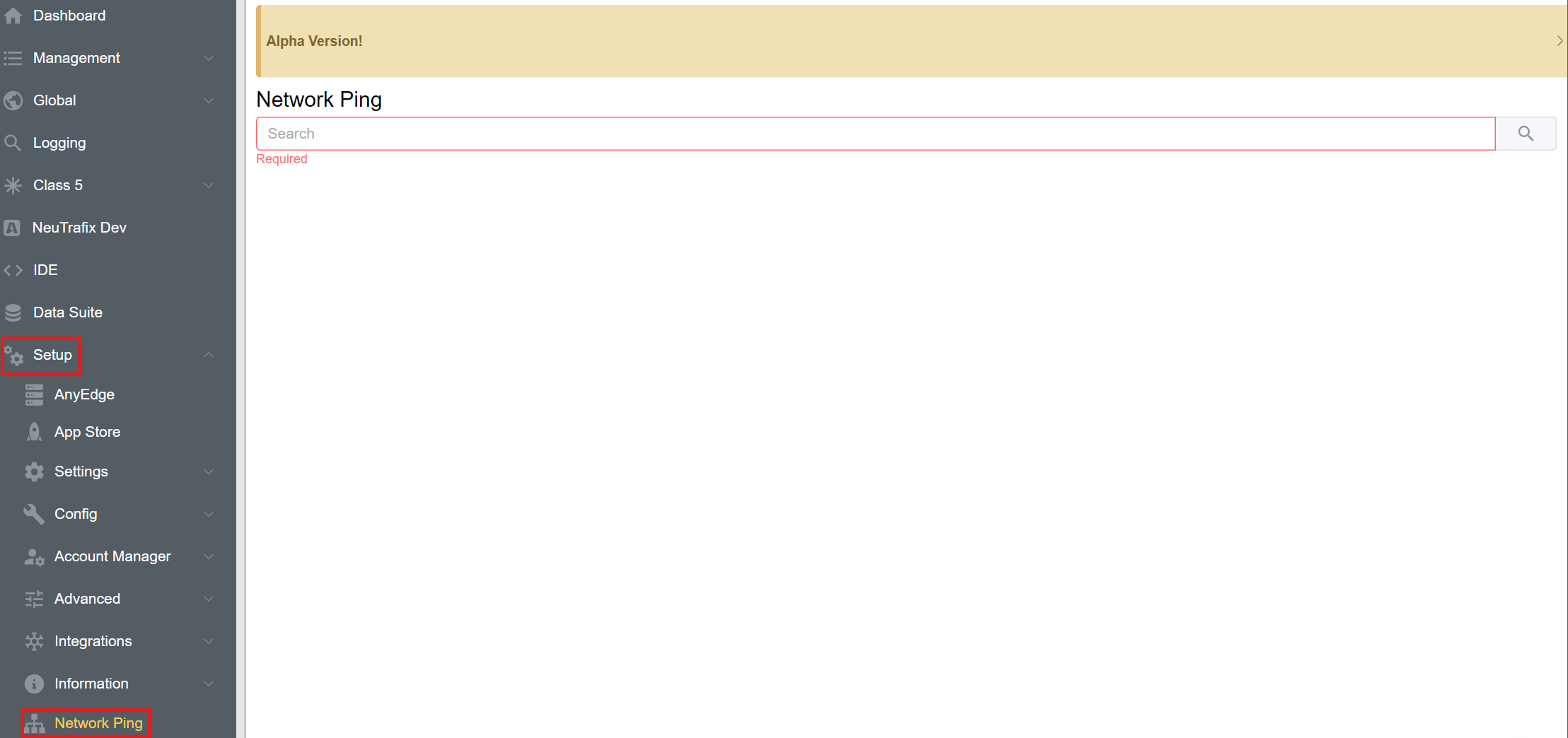 The Network Ping tool is currently in Alpha mode. Functionality, data accuracy, and visual behavior may change as the feature is still under active development and testing.