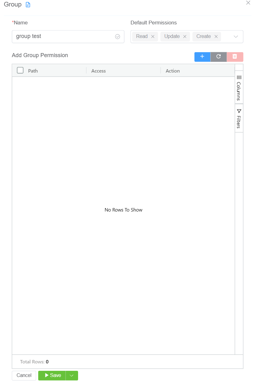 Click on the Group to view the "Add Group Permission" table. Click next to the table.