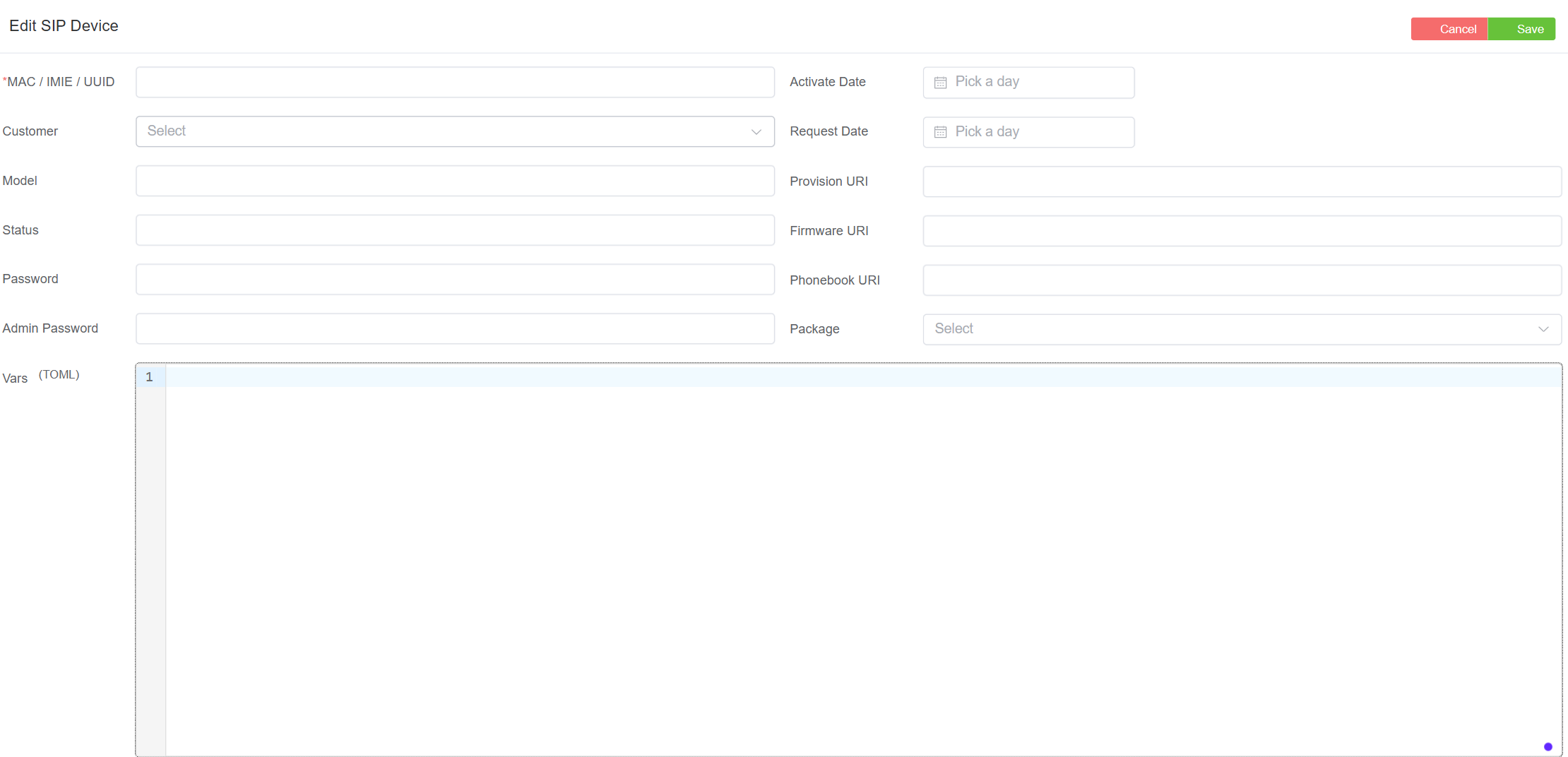 Use the Vars field to configure custom parameters such as shared line extensions and customer Phonebook.