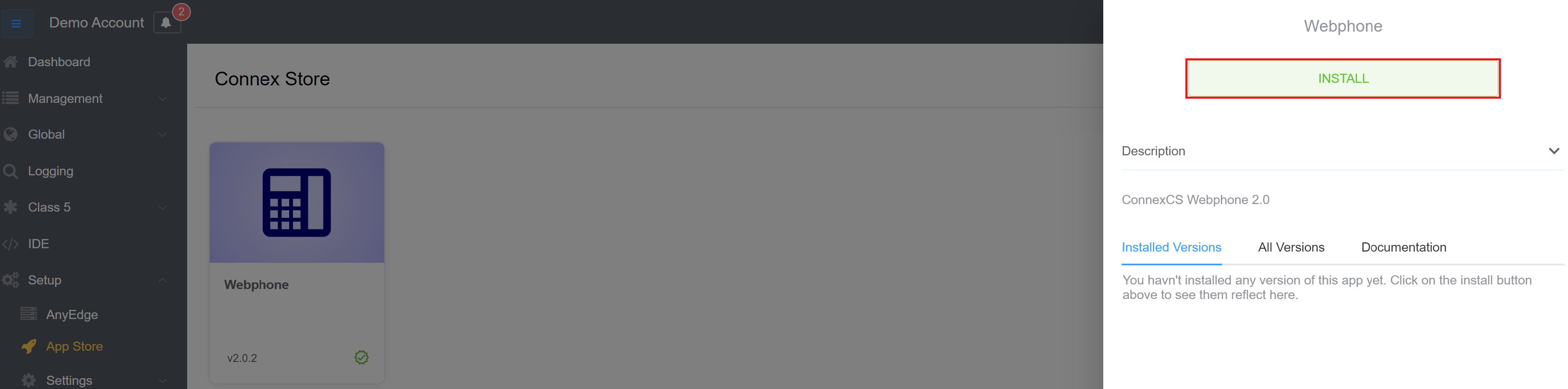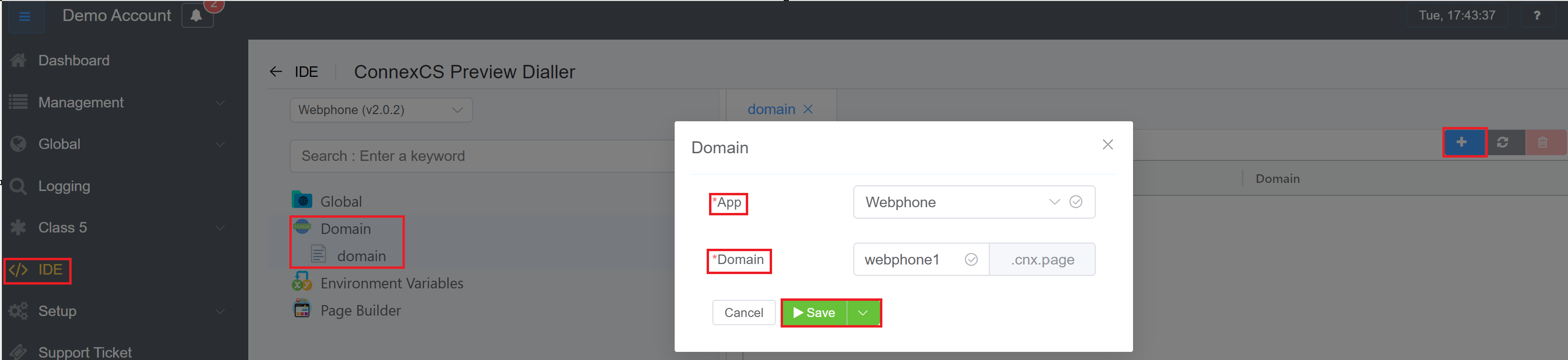 - Navigate to the IDE section, and from the dropdown select the WebPhone App.